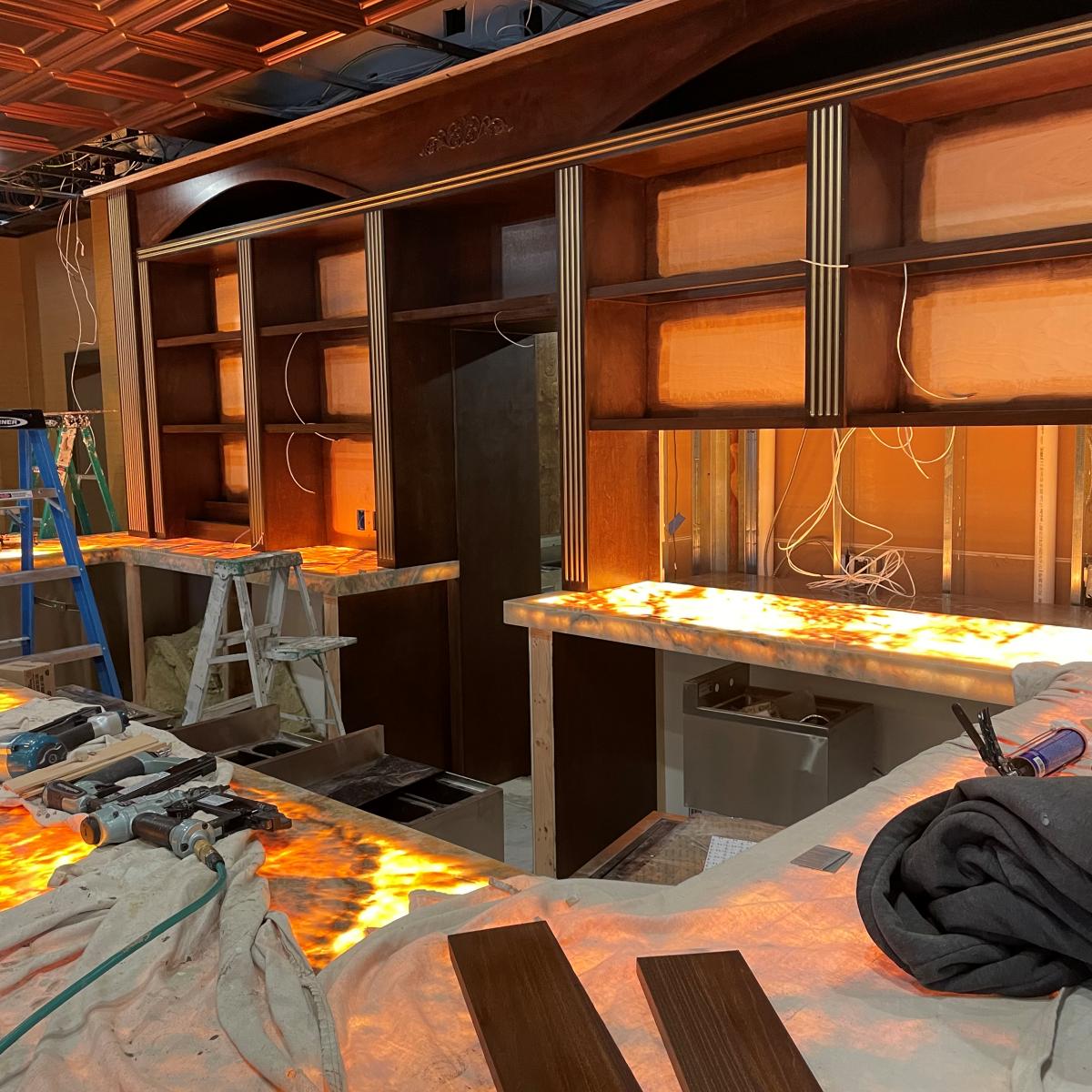 Create a stylish and functional atmosphere with a custom-designed restaurant bar.